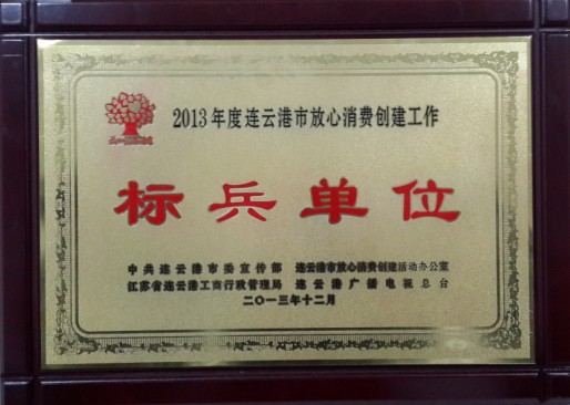 工商行政管理局、连云港广播电视总台授予2013年度连云港市放心消费创