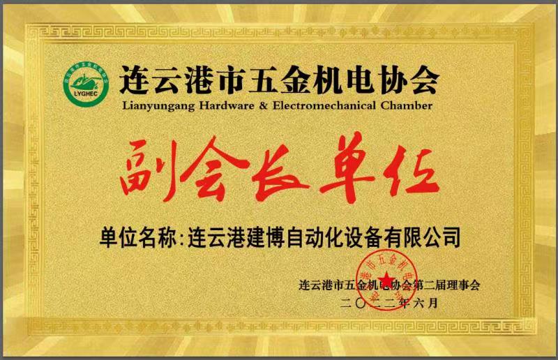 热烈欢迎连云港建博自动化设备有限公司加入市五金机电协会并成为我会副会长单位。